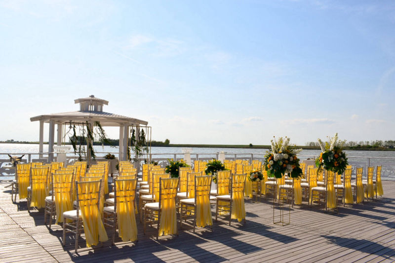 Pentru o cununie de neuitat, complexul va pune la dispozitie un ponton alb pe malul lacului.